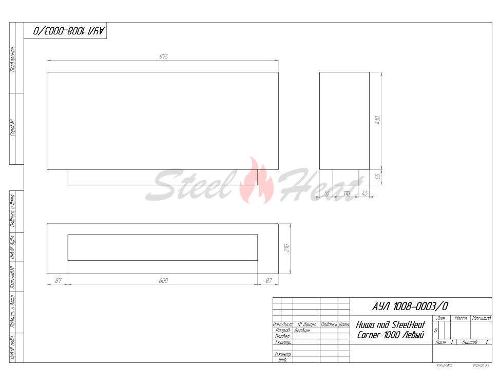 Биокамин угловой SteelHeat Leader 1000 левый