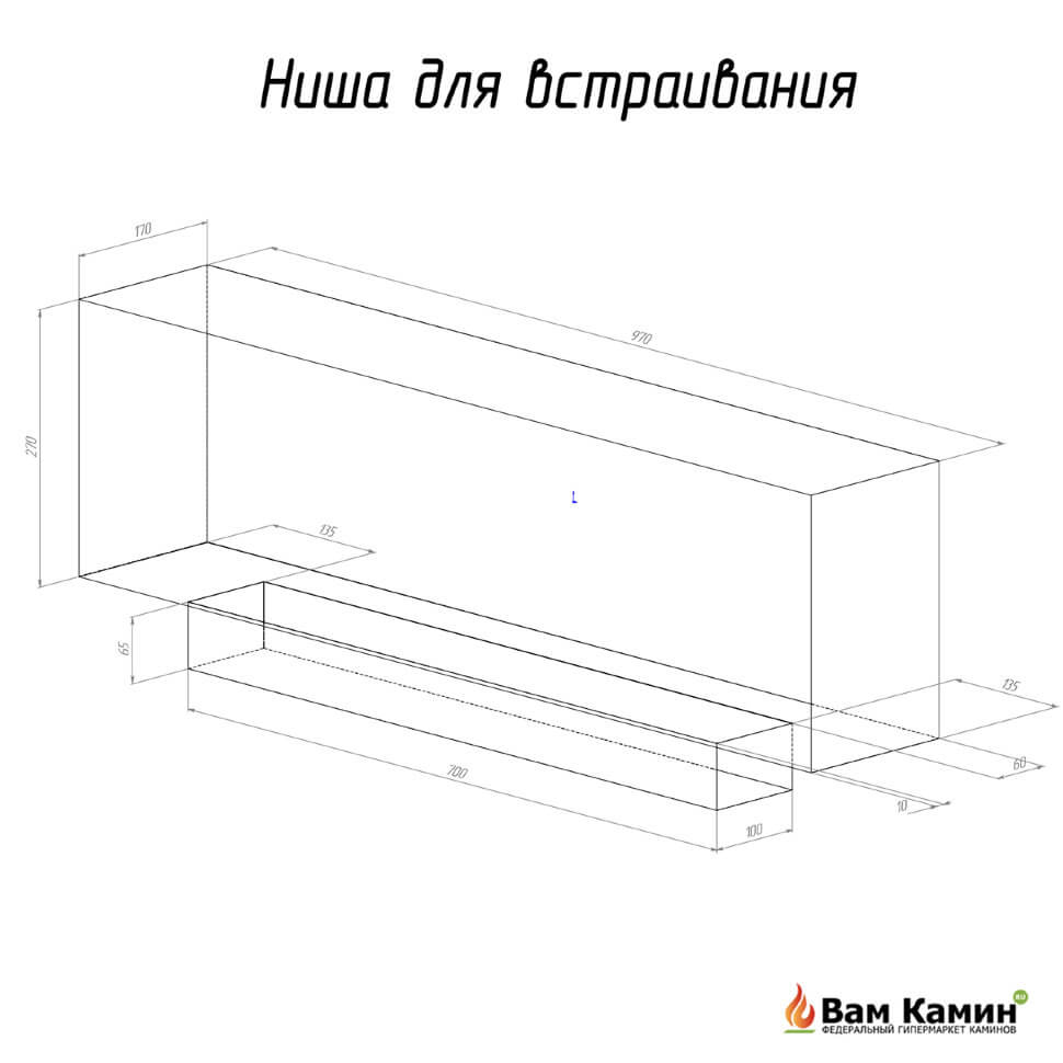 Встраиваемый биокамин ELLIOT 1200 предназначен для встраивания в глухие ниши из гипсокартона, кирпича, пеноблоков, бетона.