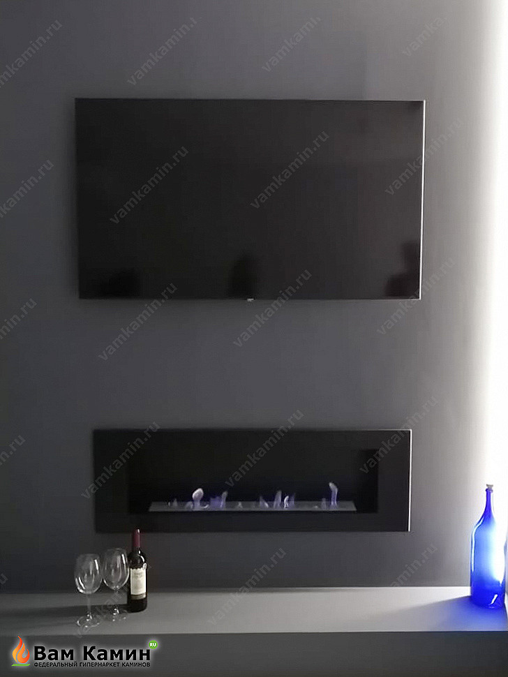 В представленном проекте аппарат SteelHeat LONG 1200 Small XL великолепно сочетается со стильным дизайном серой стены. Огонь биокамина отлично дополняет композицию помещения. Взглянув на фото покупателя, ловите себя на мысли, что и сами бы отдохнули возле такого биокамина с бокалом вина в руке.